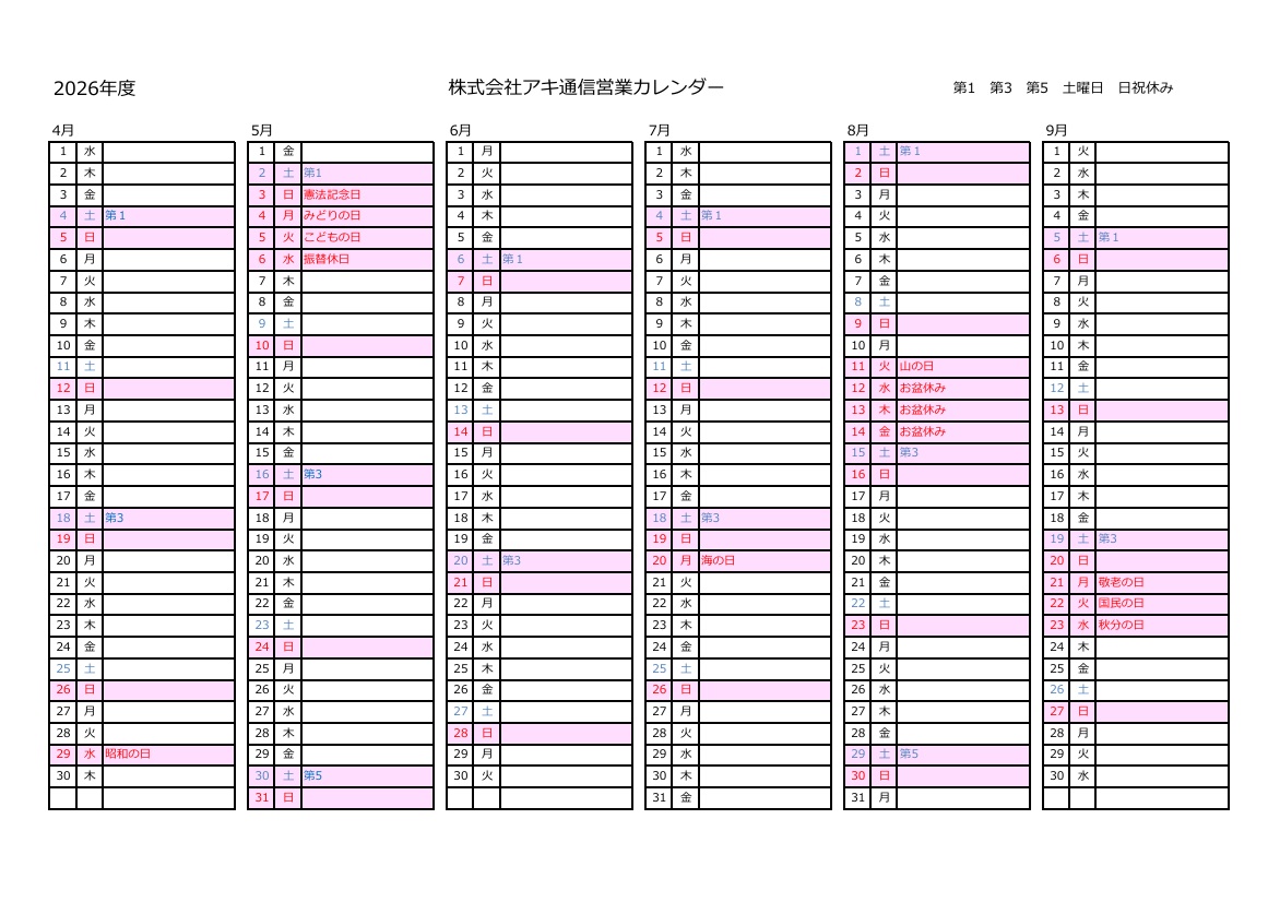 9:00〜12:00 / 13:00〜18:00(土日祝・お正月休)